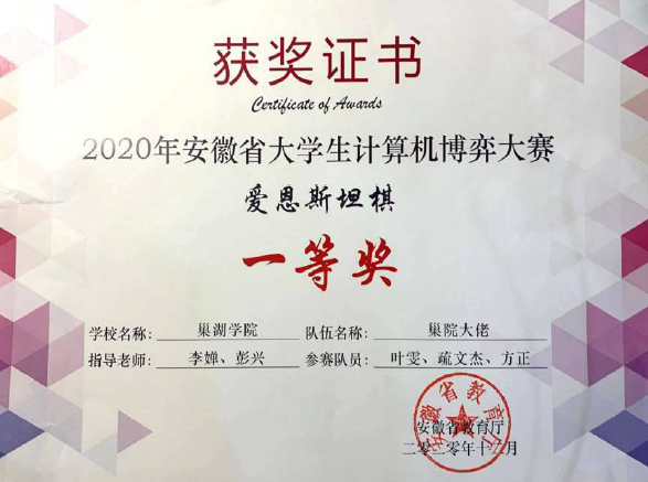 2020安徽省大学生计算机博弈大赛“爱恩斯坦棋”一等奖