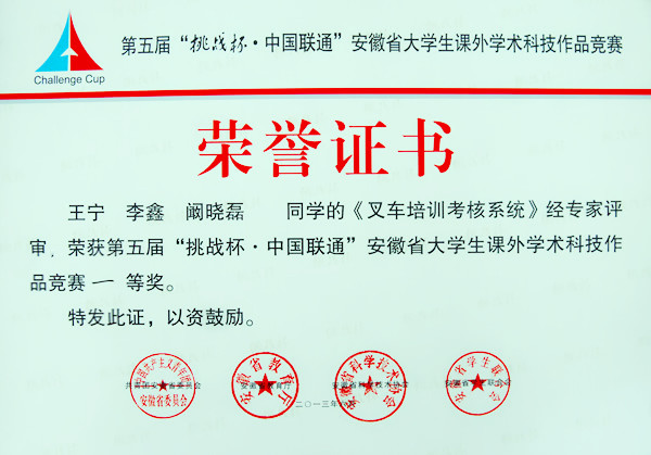 第五届“挑战杯”安徽省大学生课外学术科技作品竞赛一等奖