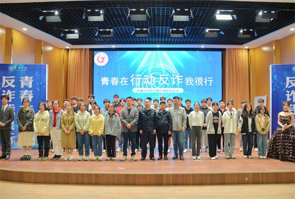 情景剧中,同学们针对常见的网络刷单、冒充电商客服、冒充公检法、网恋诈骗等诈骗手段,自编自导自演的情景剧搬上舞台,以生动活泼的方式给现场的同学们上了一堂别样的“安全教育课”。《赚钱新路子》《亦真亦假》《骗与不骗》《天降“陷”饼》《无所不用其“急”》五个节目从不同的诈骗类型展示了大学生常见的电信诈骗案例。同学们以诙谐幽默的方式、创意十足的剧情、贴近生活的台词和精彩生动的表演,让观众在笑声中,深刻认识电信网络诈骗的危害性。反诈防骗小知识,观众抢答环节,更是把现场氛围推向高潮。