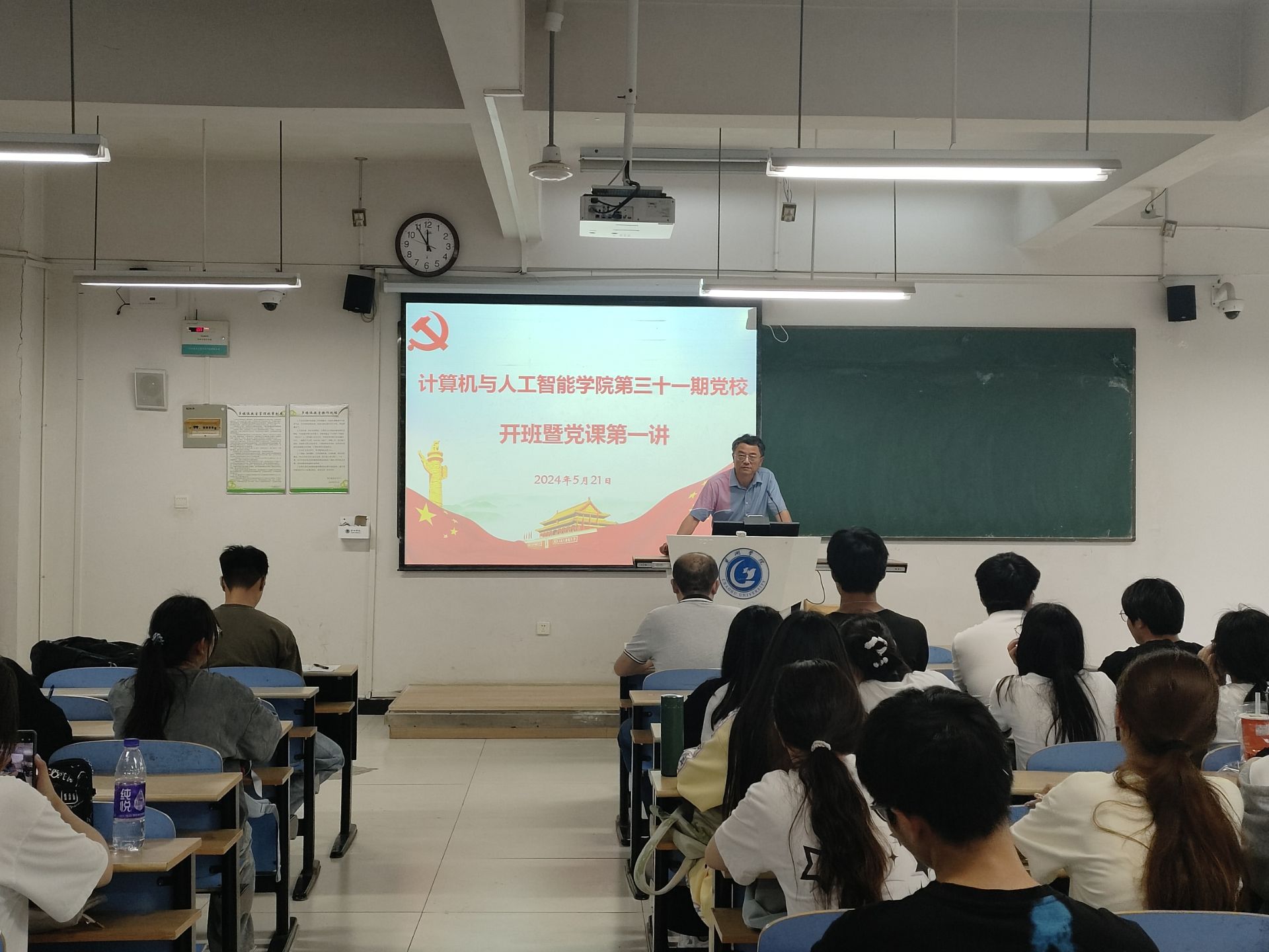 为进一步加强基层党组织和党员队伍建设,严把党员发展的“入口关”和“质量关”,切实加强入党积极分子的思想理论水平和政治素养,提高对党的认识和了解。5月21日中午,计算机与人工智能学院第31期党校培训班开班典礼暨党课第一讲在慎思楼中104教室举行。党校培训工作领导组全体成员出席了本次开班典礼,学生党员代表以及入党积极分子参加,本次开班典礼由学院组织员樊乐乐主持。