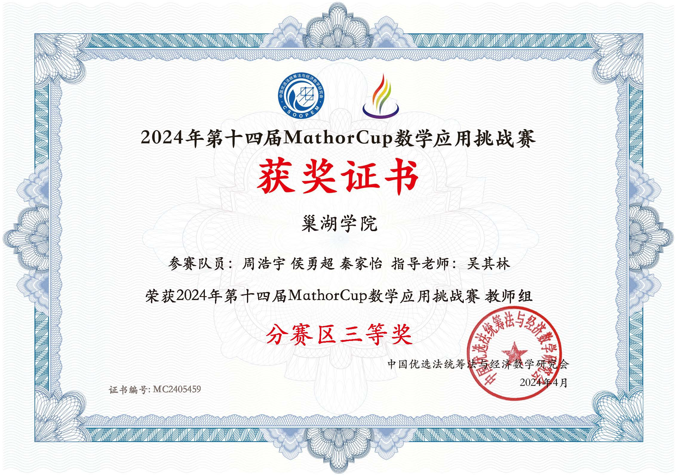 Beat365唯一官方网站学子在2024年第十四届MathorCup高校数学建模挑战赛中荣获佳绩