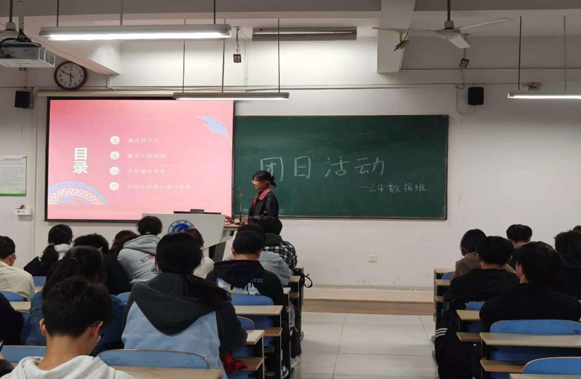 在本次活动中,各基层团支部以“讲好廉洁故事,传承廉洁文化”为主题开展线下廉洁文化团日活动。同学们分别用“周恩来的衣服”、“羊续悬鱼”、“陶母退鱼”等故事向大家展示了“人生唯廉洁重”的道理。