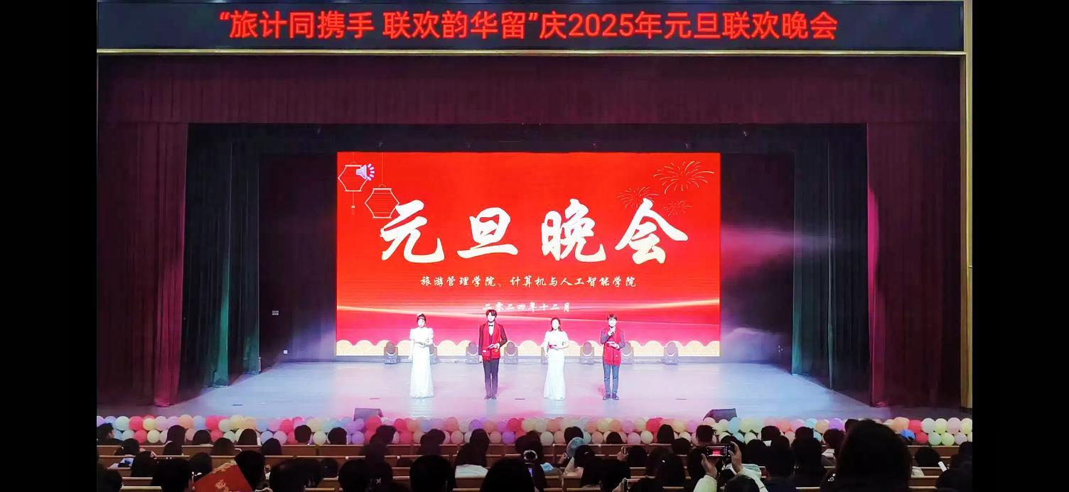 新年肇起,华章日新,旦逢良辰,顺颂时宜。12月27日晚,计算机与人工智能学院与旅游管理学院在大学生活动中心大礼堂共同举办2025年元旦联欢晚会。旅游管理学院党委书记洪作奎、计算机与人工智能学院党委副书记王震宇、旅游管理学院党委副书记邓其志以及学校师生800余人到场观看。