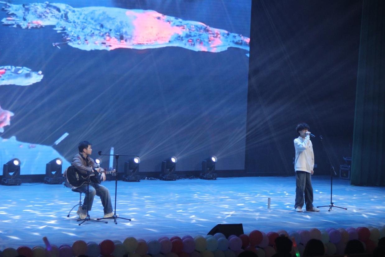 团舞《寄明月》用轻盈欢快的舞姿拉开了晚会的序幕。歌曲串烧、合唱《违背的青春》、《最长的电影》、师生合唱《我的未来式》等歌曲唱出了对青春的迷茫与执着。朗诵《青春中国》用深情的语调诉说着对祖国的热爱。短剧《我爱我的祖国》用真挚的情感演绎了青年一代的家国情怀,引起全场共鸣。弹唱《路过人间》,歌声悠扬,触动人心。舞蹈《冬日》《kiss me》洋溢着青春的活力与激情。充满力量与节奏感的双截棍表演点燃全场热情。晚会在《我和我的祖国》悠扬的歌声中落下帷幕。