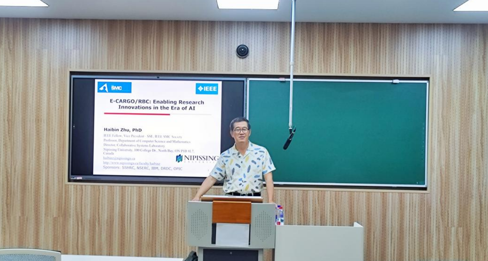 会议特邀加拿大Nipissing大学Haibin Zhu教授作主旨报告,Zhu教授是国际知名的基于角色的协作(RBC)和E-CARGO模型创始人,IEEE会士、ACM高级会员,在协作系统、群体智能、多智能体系统等领域具有深远影响力。在报告中,Zhu教授系统介绍了E-CARGO(环境-类、代理、角色、群体与对象)模型的核心理论及其在复杂系统协作中的应用。重点阐述了该模型如何通过角色分配(GRA)和系统优化策略,提升群体智能、物联网、智能城市及网络物理系统的协作效率,并探讨了当前面临的挑战与未来发展方向。