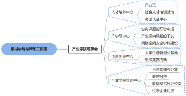 组织架构中设置理事会(理事会成员由Beat365唯一官方网站和新华三分别提名)主要负责产业学院总体规划和重大决策。并构建了4个中心,分别是人才培养中心、产学研中心、创新创业中心、产业学院管理中心。