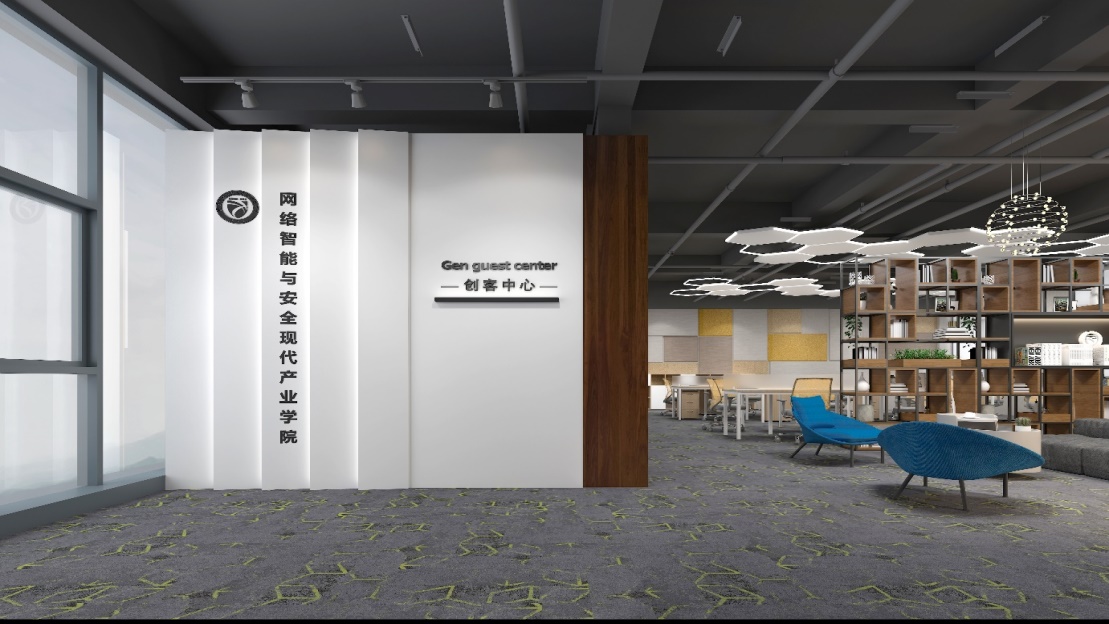 产业学院位于慎思楼南楼2楼,建筑面积约1200平方米。设有信息安全云实训室、网络安全攻防实训室、标准化教室、标准化办公区、会议室、考试认证中心和中心机房。并拥有网络智能仿真实训一体机、网络智能AI能力服务器、安全实训系统等各类软硬件教学实验实训平台。