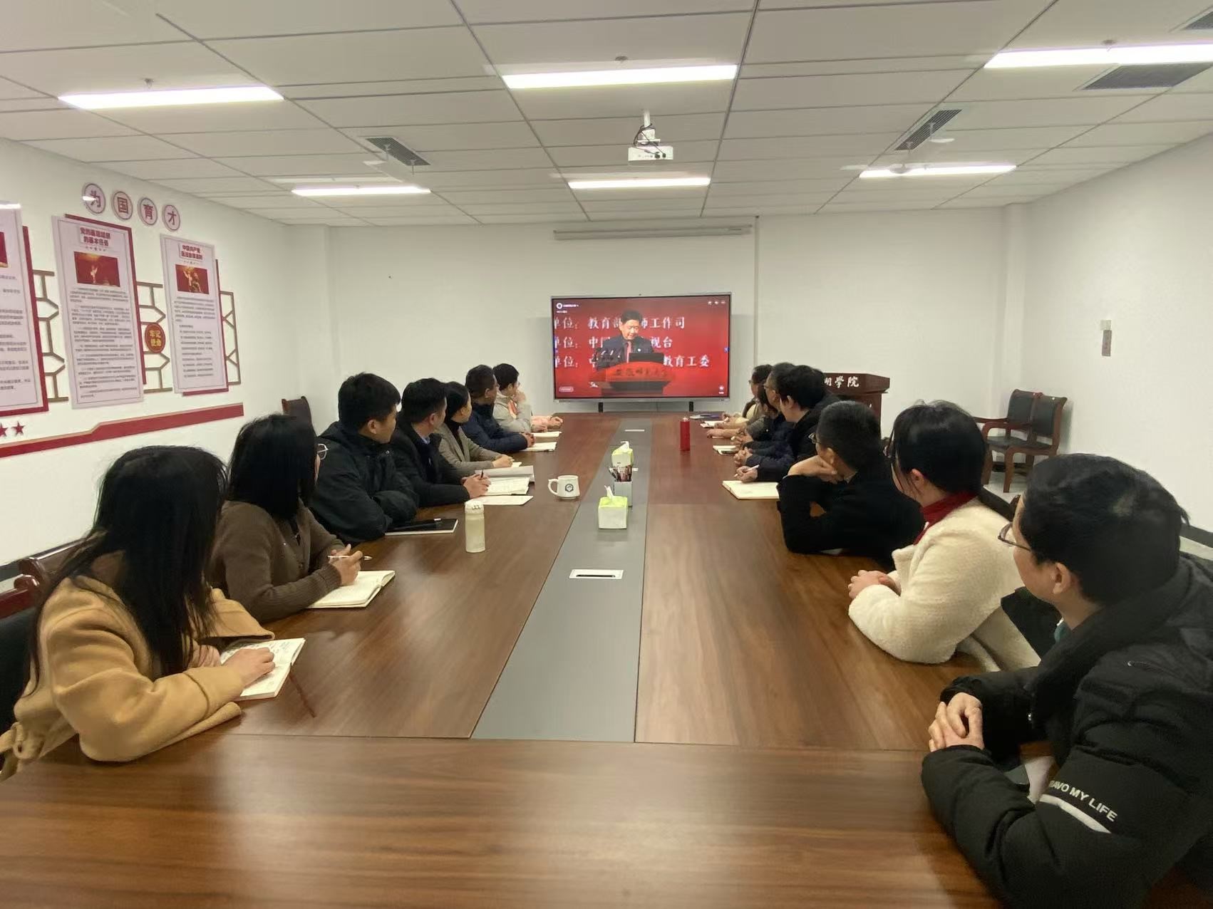 为深入贯彻落实习近平总书记关于大力弘扬教育家精神的重要指示,激励广大教师自觉践行教育家精神,凝聚投身教育强国建设的强大合力,2月27日下午,教务处全体教职工在会议室集中观看了“教育家精神2025年巡回宣讲活动”。