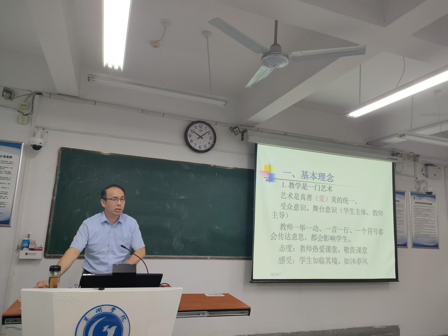 培训活动由两项内容组成。一是开展听评课活动。邀请了马克思主义学院付加佳和文学与传媒学院毛莎莎两位老师现场开展教学示范,与会教师进行听评课,通过听与评的互动,提升教学能力。二是开展专题辅导。丁俊苗副校长为年轻教师作了题为《立人成己——努力成为教育家型教师》的专题辅导报告,从基本理念、基本要求、教学基本功、教学设计、课堂教学等七个方面作了全面指导。整场报告内容丰富案例鲜活、见解独到,具极高的借鉴价值与可操作性,为教师们如何精进教学提供了明确的方向指引与实用的方法指导。