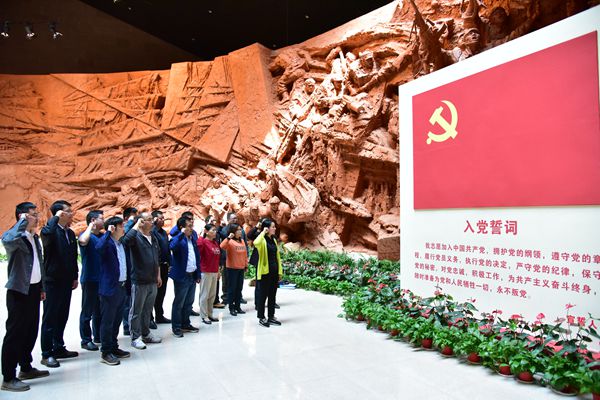 在讲解员的引导下,大家依次参观学习了渡江战役战前内外形势、战役决策部署、战役经过、历史意义和英烈业绩等展区,通过瞻仰历史人物、聆听革命故事以有参观相关的文物、图片和场景再现等,全体党员深切感受到革命先烈“宜将剩勇追穷寇,不可沽名学霸王”的坚定信念和将革命进行到底的大无畏精神。随后,在渡江战役纪念馆序厅,全体党员在支部书记郑玲的带领下,面向党旗庄严宣誓,重温入党时对党作出的庄严承诺,宣誓坚守初心使命,砥砺奋进前行。郑玲为全体党员赠送政治生日贺卡,并勉励大家要牢牢守住纪检监察干部信仰信念的“魂”和“根”,自觉加强党性修养和党性锻炼,永葆共产党人的政治本色。