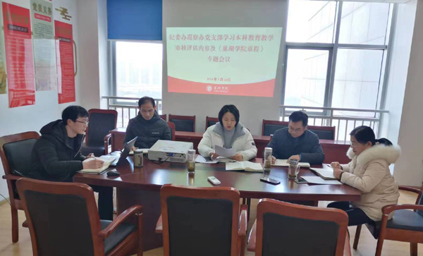 郑玲就支部学习贯彻本科教育教学审核评估内容和《章程》提出三点建议:一要统一思想认识,充分认识审核评估工作和学习贯彻《章程》对学校发展的重要意义和作用;二要深入开展学习,深刻领会审核评估内容和《章程》的核心要义;三要理论联系实际,紧密结合审核评估、《章程》和支部实际,扎实推进纪委办、巡察办相关工作。
