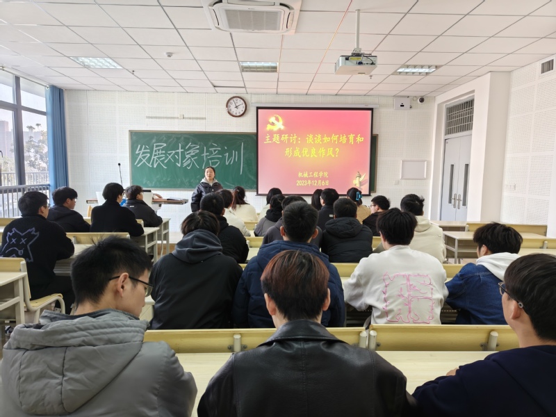 为深入学习贯彻党的二十大精神和习近平总书记关于加强作风建设的重要论述,切实加强学院师生作风建设,2023年12月6日,机械工程学院党委党校组织入党积极分子和发展对象开展“谈谈如何培育和形成优良作风”的主题研讨活动。活动由学院党委党校培训班班主任方钱主持。