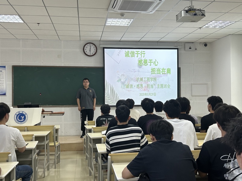为进一步深化“三全育人”,增强青年大学生的诚信意识和责任担当,提升育人实效,2025年5月,机械工程学院组织开展了“诚信·感恩·担当”主题教育月系列活动。