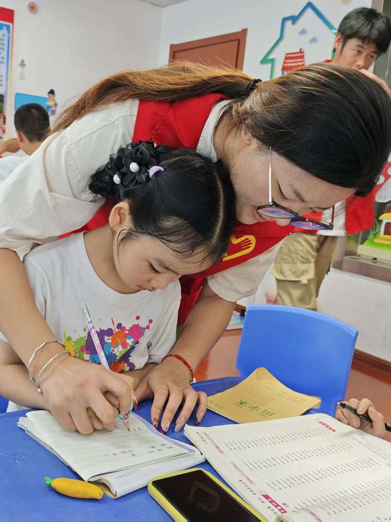岗岭社区居委会工作人员先为每位志愿者分配了对接的小朋友。面对陌生人,孩子们起初拘谨,直到一位小女孩询问数学题,打破尴尬。后续相处中,孩子们眼中迷茫渐消,对知识的渴望成为常态,志愿者耐心辅导功课的场景时常出现。