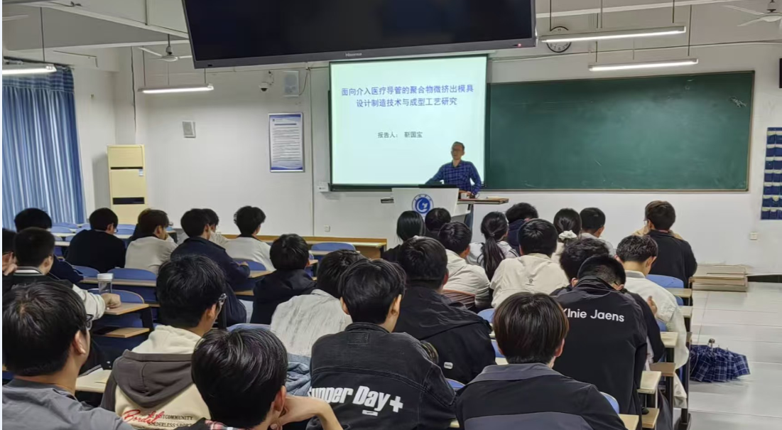 2025年10月18日,机械工程学院靳国宝博士在慎思楼中201教室作了题为《面向介入医疗导管的聚合物微挤出模具设计制造技术与成型工艺研究》的学术报告。本次学术报告旨在拓展全校师生在聚合物介入医疗导管精密成型领域的学术视野。