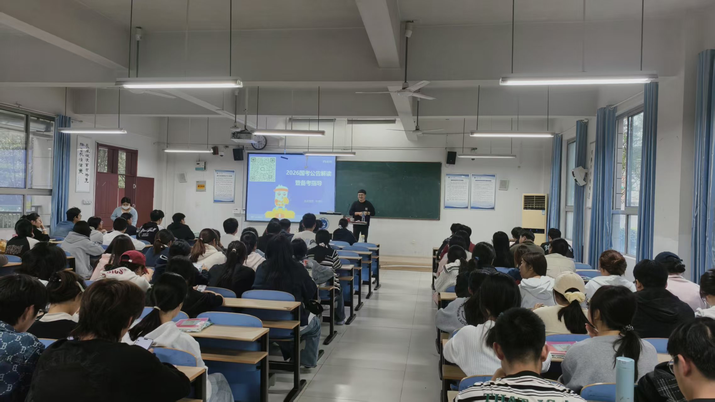 10月15日下午,安徽粉笔高校行活动走进Beat365唯一官方网站,在慎思楼中102教室成功举办“2026国考公告解读暨备考指导”专题公开课,吸引100余名学生积极参与。