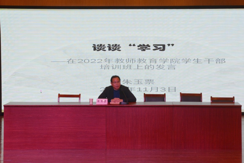 开班仪式结束后,朱玉票以《谈谈学习》为题做了第一讲培训。他引经据典与大家分享了“什么是学习”“如何去学习”“怎么做学习笔记”,提醒学生干部要树立终身学习意识,应把读书学习作为终身习惯,做到好学乐学,学以修身、学以致用。(文/黄越 图/唐怡博 初审/左劲中 终审/朱玉票)