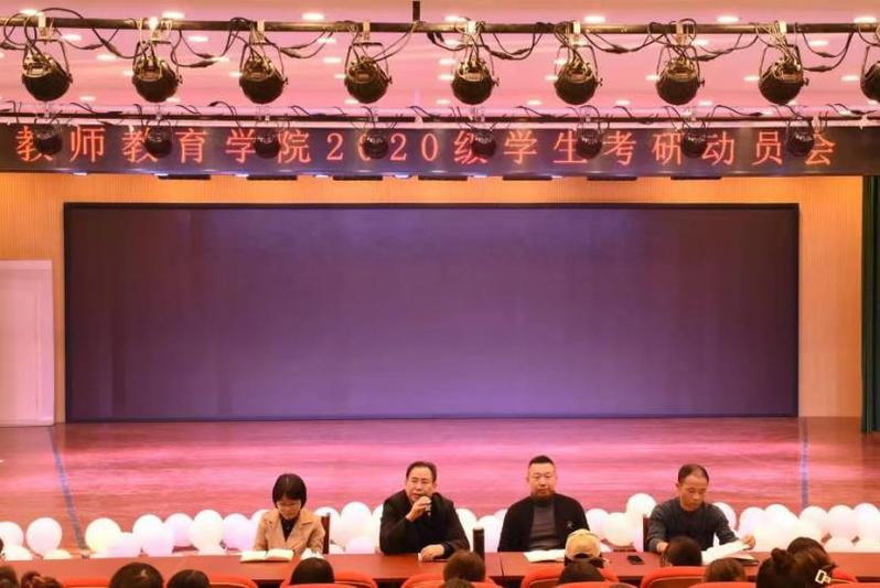 为贯彻培养学生为中心的思想,增强学生的社会市场竞争力。11月9日16:00教师教育学院在艺术楼报告厅举办2020级学生考研动员会,会议由副院长蔡广主持,党委书记朱玉票、副书记左劲中、副院长郑艳、教师代表以及辅导员参会,全场座无虚席。