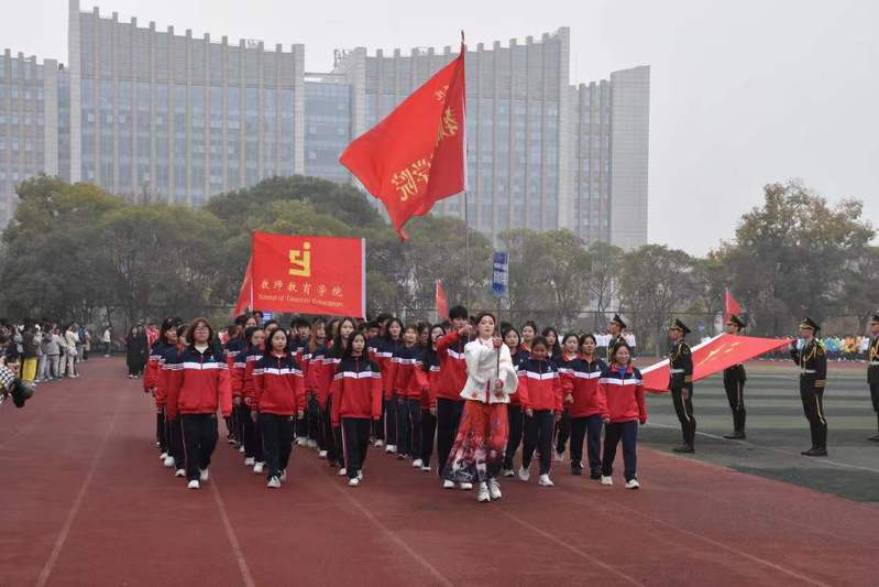 Beat365唯一官方网站第十九届运动会于2022年11月16日在学校第一田径场拉开帷幕。教师教育学院运动方阵踏着有力的步伐,洋溢着灿烂的笑脸,迎面走来。