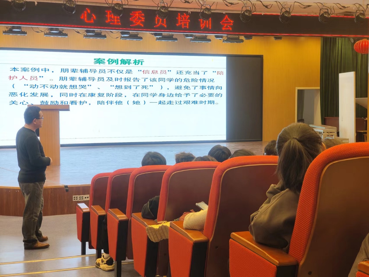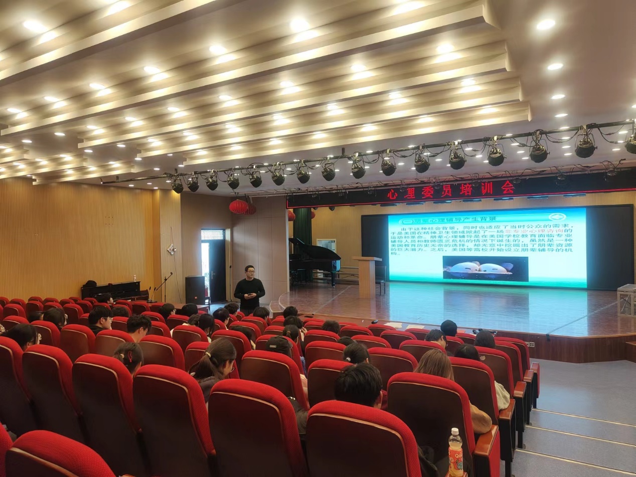 为加强心理委员队伍建设,提高学生心理队伍的工作实效,夯实学校心理健康教育网格体系。心理健康教育中心于3月15日中午,在艺术楼音乐报告厅开展主题为“朋辈心理辅导”的心理委员培训会。本次培训由秦鹏生老师主讲,各学院2022级全体心理委员参加。