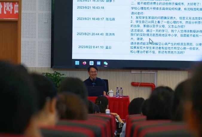用心交流,心育先行。大学生心理危机具有高度的复杂性、紧迫性,此次培训帮助我校心理健康教育工作者提高对危机事件的发现、识别和应对处理能力,并为校内危机干预培训提供了指导,为学生的心理健康与学校和谐稳定保驾护航。(文、图/王安琪 初审/郑艳 终审/蔡广 华紫武)