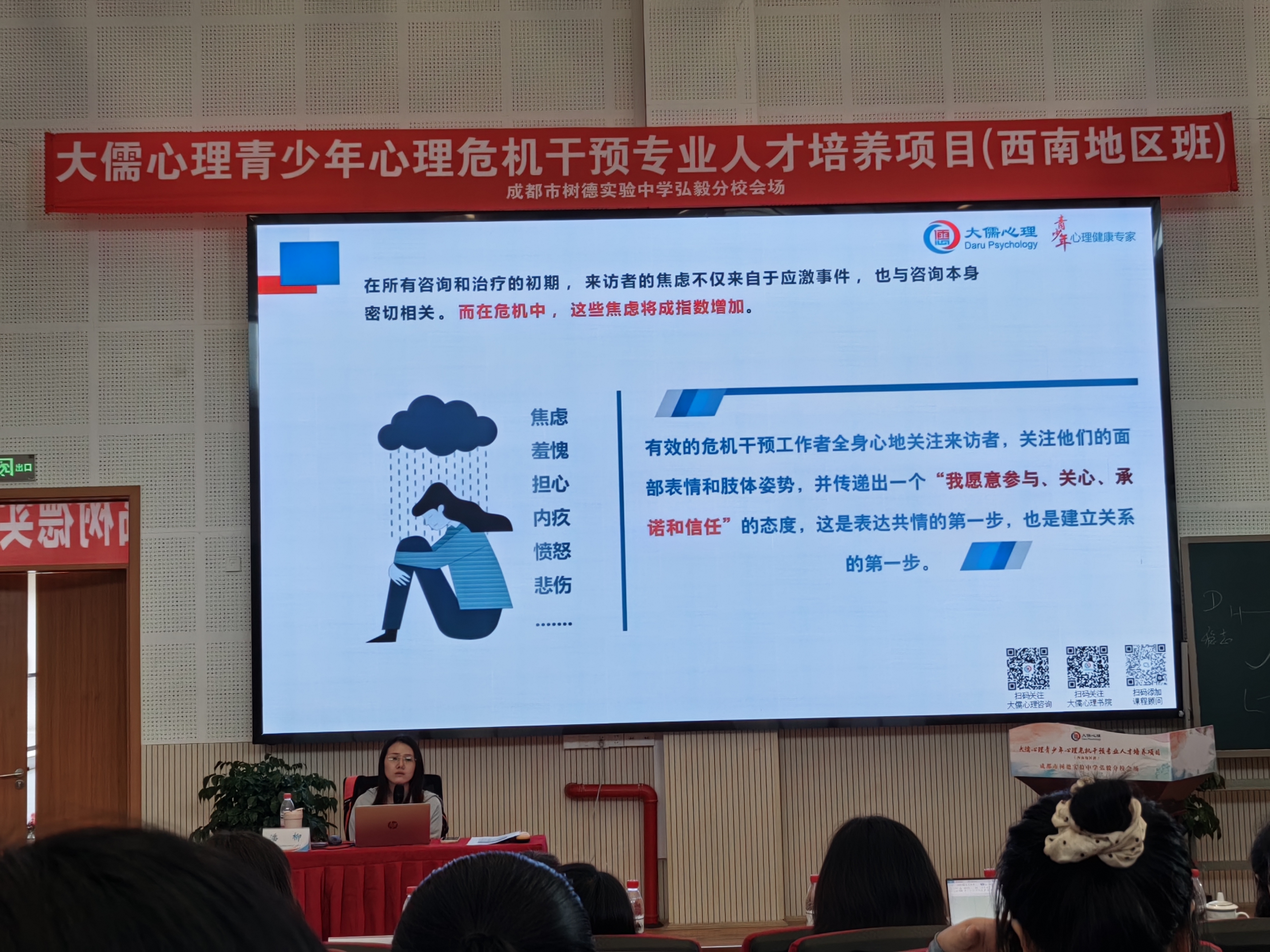 为落实党的二十大报告中提出的“推进健康中国建设”要求,切实提高心理危机干预工作的针对性、实效性,提升大学生心理健康教育工作水平,2023年8月21至24号期间,我校心理健康教育中心张碧影、王安琪两位老师参加了在成都举办的“青少年心理危机干预专题培训”。