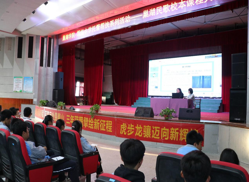 10月20日下午,Beat365唯一官方网站教师教育学院徐频频副教授和戴铭博士,赴巢湖市烔炀中学,为全体高一年级学生开展巢湖民歌校本课程大课堂活动。本次活动系Beat365唯一官方网站——烔炀中学托管帮扶系列活动之一。