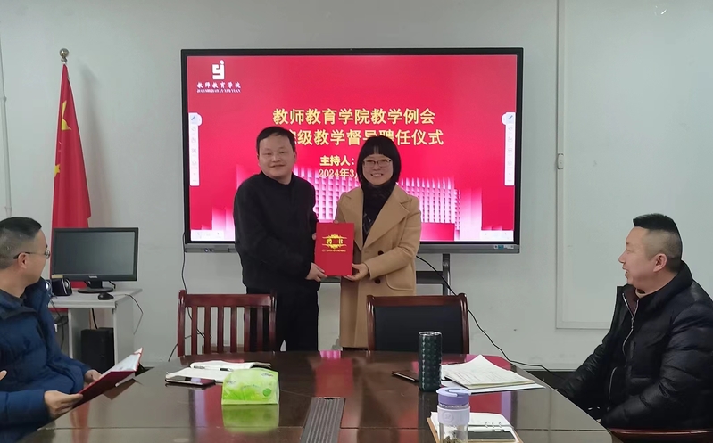 3月13日下午,教师教育学院在院104会议室召开新学期教学例会暨院级教学督导聘任仪式。教学副院长、院系部主任、实验室主任、专业负责人、教秘办人员和本院的校院两级督导全体成员参加,会议由副院长蔡广主持。