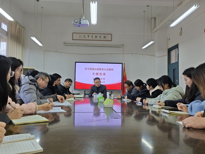 周峰指出,党的二十届三中全会确立了把教育、科技、人才一体统筹推进作为提高国家创新体系整体效能的重要基础和支撑,部署了深化教育综合改革任务。习近平总书记在全国教育大会上发表的重要讲话,系统阐释了教育强国的科学内涵和基本路径,深刻阐述了教育强国建设要正确处理好的重大关系,系统部署全面推进教育强国建设的战略任务和重大举措,为学校各项事业发展指明了前进方向、提供了根本遵循。他强调全体党员要将习近平总书记重要讲话精神落实到具体工作中,要深刻思考学院与专业的发展前景,勇于跳出自身局限,站在全局高度观察和解决问题,不断开拓思维边界、提升认知水平,以实际行动推动学校事业发展。