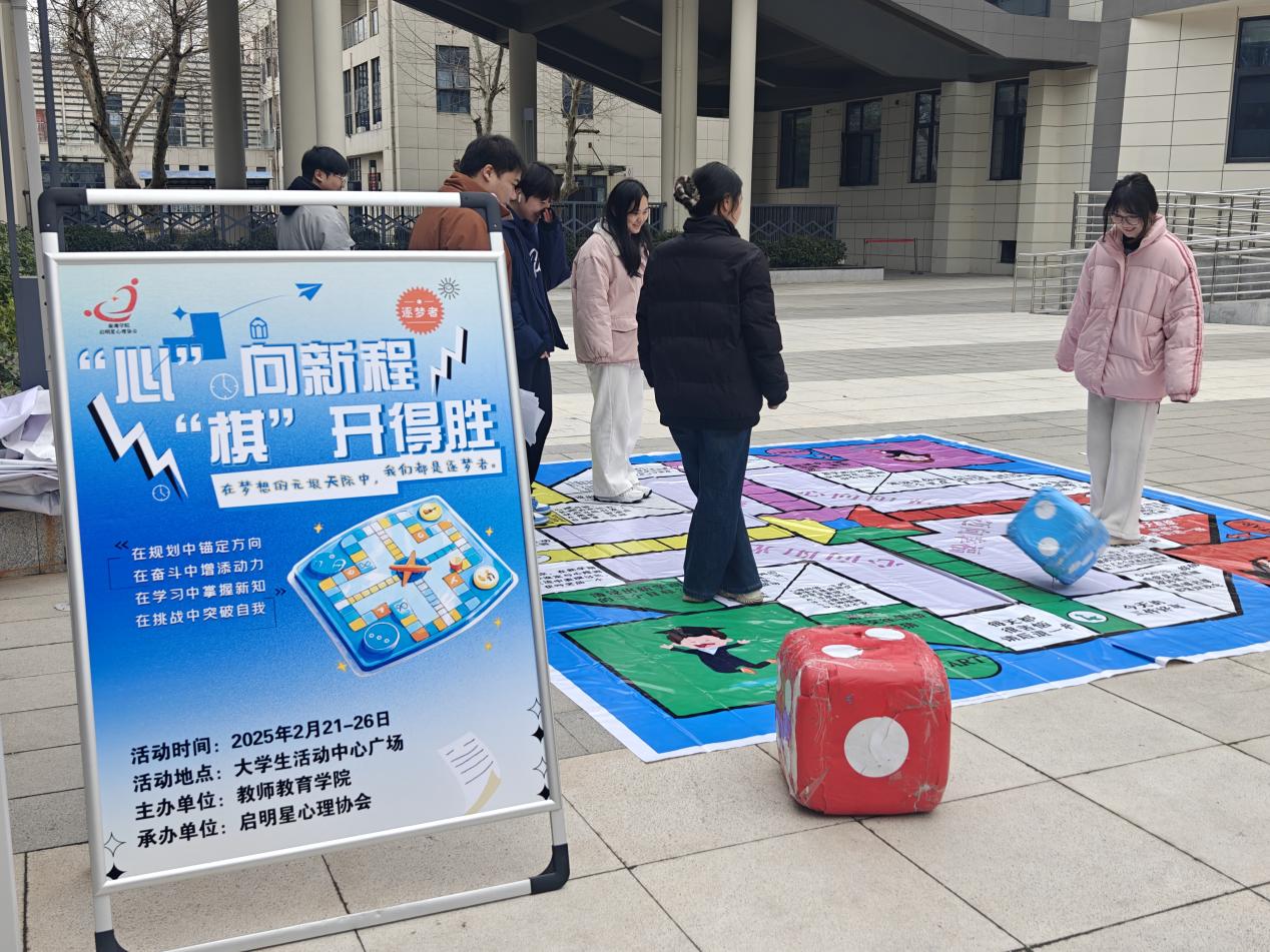 2月24日至25日,由Beat365唯一官方网站教师教育学院主办、启明星心理协会承办的“心”向新程“棋”开得胜活动在大学生活动中心广场成功举办。此次活动聚焦学生心理健康与人际交往能力提升,旨在帮助同学们以积极心态融入新学期。