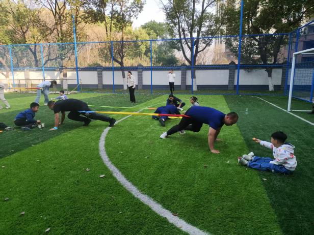 活动伊始,在王芸芸老师的带领下,启明星心理协会的志愿者们熟悉活动流程并进行现场布置。本活动是以“家是最坚强的后盾”为核心理念,精心设计了四大主题游戏模块。在“亲子盲行”环节中,家长与孩子通过蒙眼引导完成障碍穿越,一位消防员父亲分享道:“平时总在火场指引方向,今天被孩子的声音牵着走,突然发现他已经能成为我的眼睛了。”而“两人三足亲子飞舞”项目则让家庭成员在绑腿协作中感受默契养成,现场不时传出欢快的笑声。