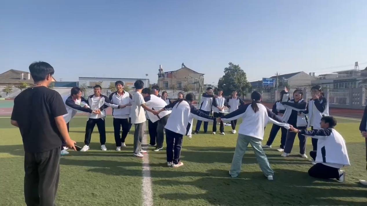 “心有千千结(不说话版)”则让同学们在无声牵手中拧成“人链”,通过跨步、转身、穿梭,将错综复杂的“结”化为圆满的圈,默契的配合赢得掌声雷动。