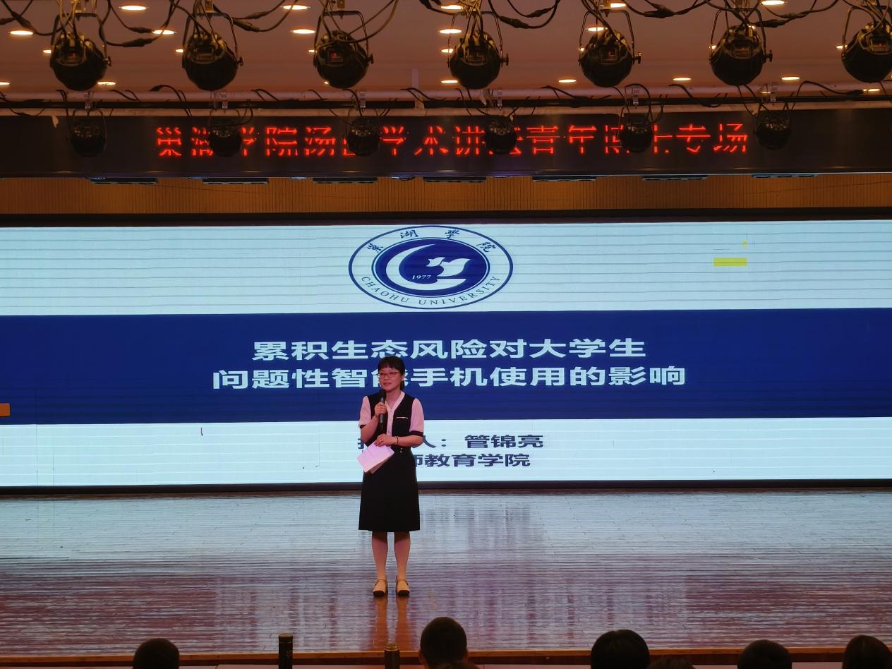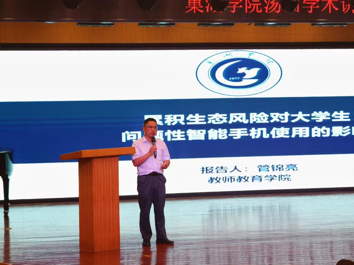 为进一步提升学院师生学术素养、拓展专业视野,促进学术交流,搭建师生交流平台,营造浓厚学术氛围,5月14日下午,教师教育学院青年博士管锦亮为师生们做了一场题为“累积生态风险对大学生问题性智能手机使用的影响”专场讲座。讲座在艺术楼报告厅举行,教师教育学院教师吴兵、信中贵、崔雁涛、刘传行、陶玮、江盈颖和应用心理学专业部分班级学生参加,副院长郑艳主持。