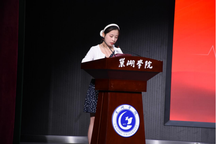 优秀毕业生代表2021级学前教育专业程慧同学发言,她分享了在教师教育学院求学的难忘经历,感慨大学时光的宝贵与美好。她表示,将带着学院的教诲和老师的期望,在新的人生阶段努力奋斗,不负青春韶华,以实际行动践行学院的育人理念。