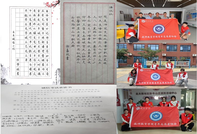 实践活动。举办诚信考试签名强化考风教育,原创作品征集深化情感认同,志愿服务践行社会责任。以实践将诚信意识、感恩情怀、担当精神内化于心、外化于行。
