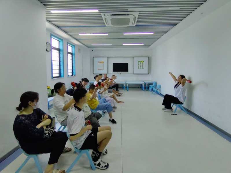 实践团整合教育学、心理学、艺术学多学科专业力量,形成“课程设计—心理评估—环境创设”协同机制。前期,团队成员通过与康复中心老师、家长的深度沟通,初步了解孩子们的情况并对部分课程加以改进,提高课程设计的合理性。在课堂中,志愿者时刻注意观察孩子们的表现,对不能跟上课堂进度的孩子进行耐心指导。此外,团队还提前开展特殊教育知识与急救培训,每节课安排两名志愿者全程陪伴,课堂中还有经验丰富的特殊教育老师随时提供指导与支持,确保团队成员可以在特殊情况下做出合理的反应,切实保护孩子们与自身的安全。