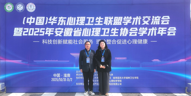 2025年10月31日至11月2日,(中国)华东心理卫生联盟学术交流会暨2025年安徽省心理卫生协会学术年会在安徽省淮南市迎宾馆召开。我校教师教育学院教师管锦亮、心理健康教育中心挂职教师谢丹丹参加本次会议。