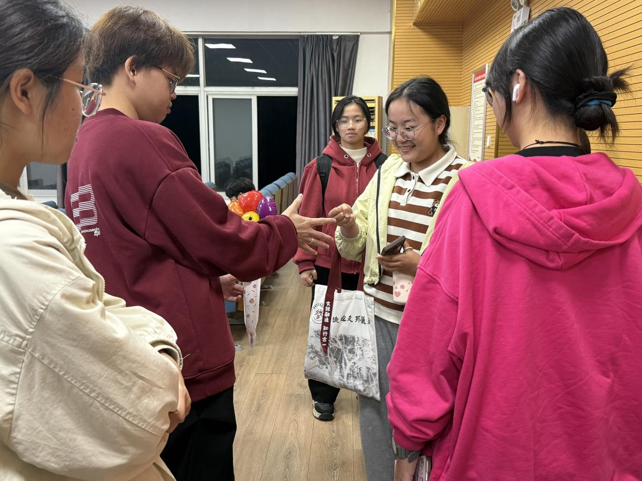 现场还设有互动游戏与抽奖环节。新生们在游戏中增进交流,现场氛围热烈;抽奖环节送出保温杯、手套等实用礼品,掌声与欢笑不断。