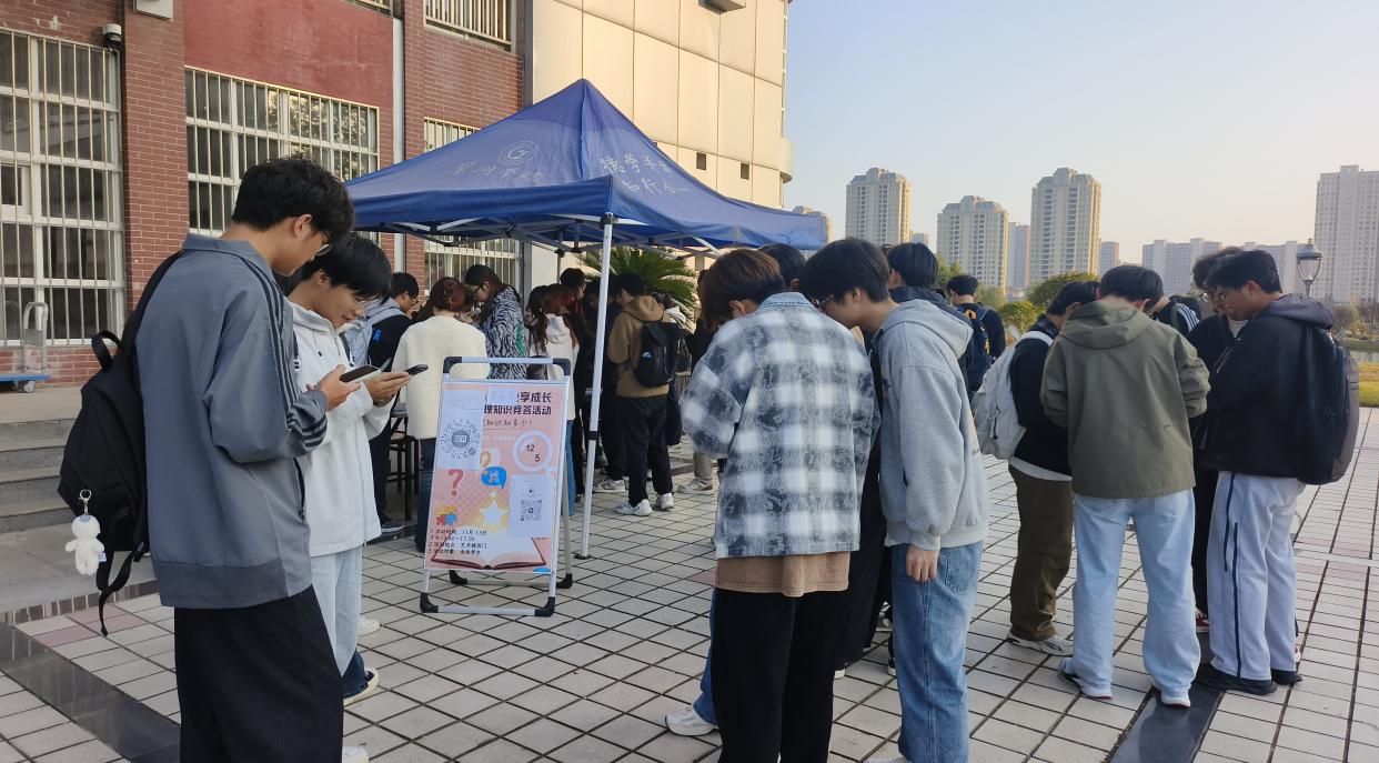 为扎实筑牢大学生心理健康防护网,引导学生树立科学健康的心理观念,11月13日下午,校心理健康教育中心以“12·5心理健康月”为契机,在艺术楼西门开展“智闯心关,悦享成长”心理知识竞答活动,现场吸引了598名学生参与,在知识竞答与互动交流中开启心灵成长之旅。