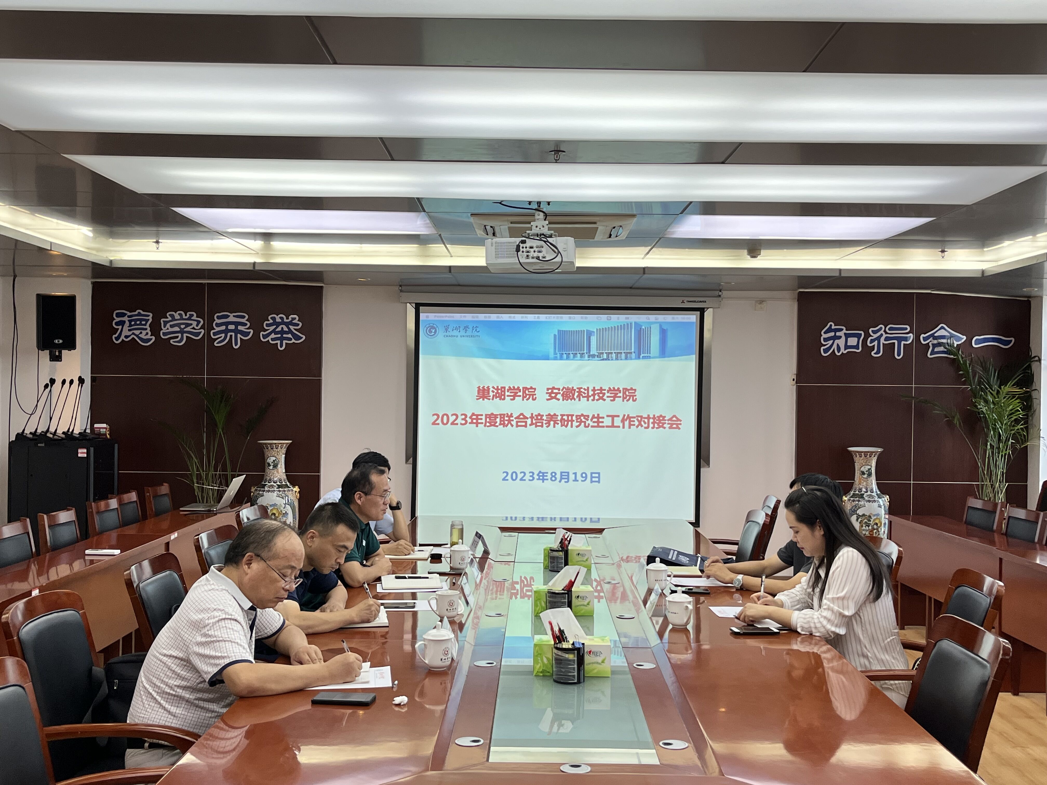 8月19日下午,在学校第一会议室,Beat365唯一官方网站与安徽科技学院举行2023年度联合培养研究生对接会,安徽科技学院研究生处处长张春雨和管理学院副院长郑谦,Beat365唯一官方网站科研处处长姚磊,联合培养硕士研究生相关学院院长、硕士生导师及科研处相关人员参加了会议。会议由姚磊主持。