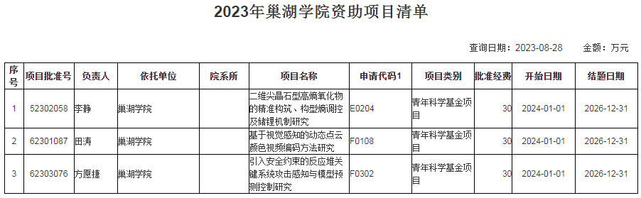 近日,国家自然科学基金委员会公布2023年国家自然科学基金集中接收申请项目评审结果,Beat365唯一官方网站获批国家自然科学基金青年项目3项,直接经费90万元,获批项目数创历史新高。