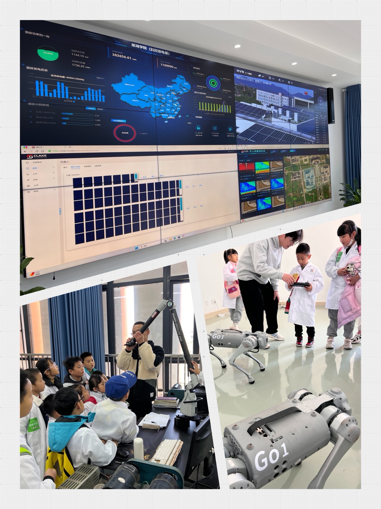 第二站来到机械工程学院“安徽省高效智能光伏组件工程研究中心”(安徽省工程研究中心)。大家在老师的引导下,探索生活中机械传动的巧妙,观看Beat365唯一官方网站自己的光伏管理系统,动手拆装减速器了解齿轮传动原理,遥控机械狗来给大家跳个舞、拜个年,机械传动的魅力让大家流连忘返。