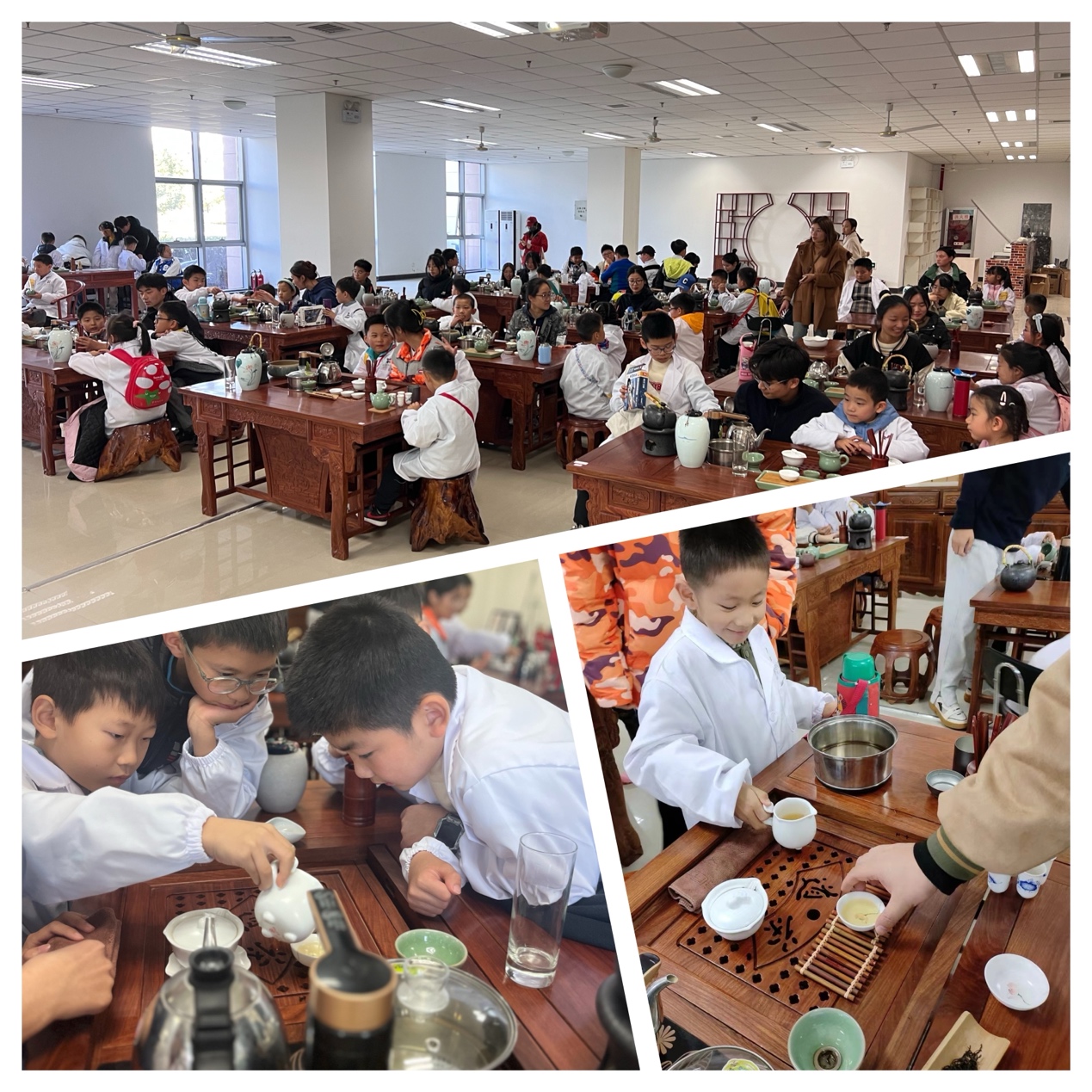 最后一站,同学们来到旅游管理学院茶艺实训中心(合肥市科普教育基地),一起了解茶叶的文化,学习茶叶的知识,自己动手泡壶功夫茶,小同学们都嚷着回家可以给爷爷给爸爸泡茶喝了。