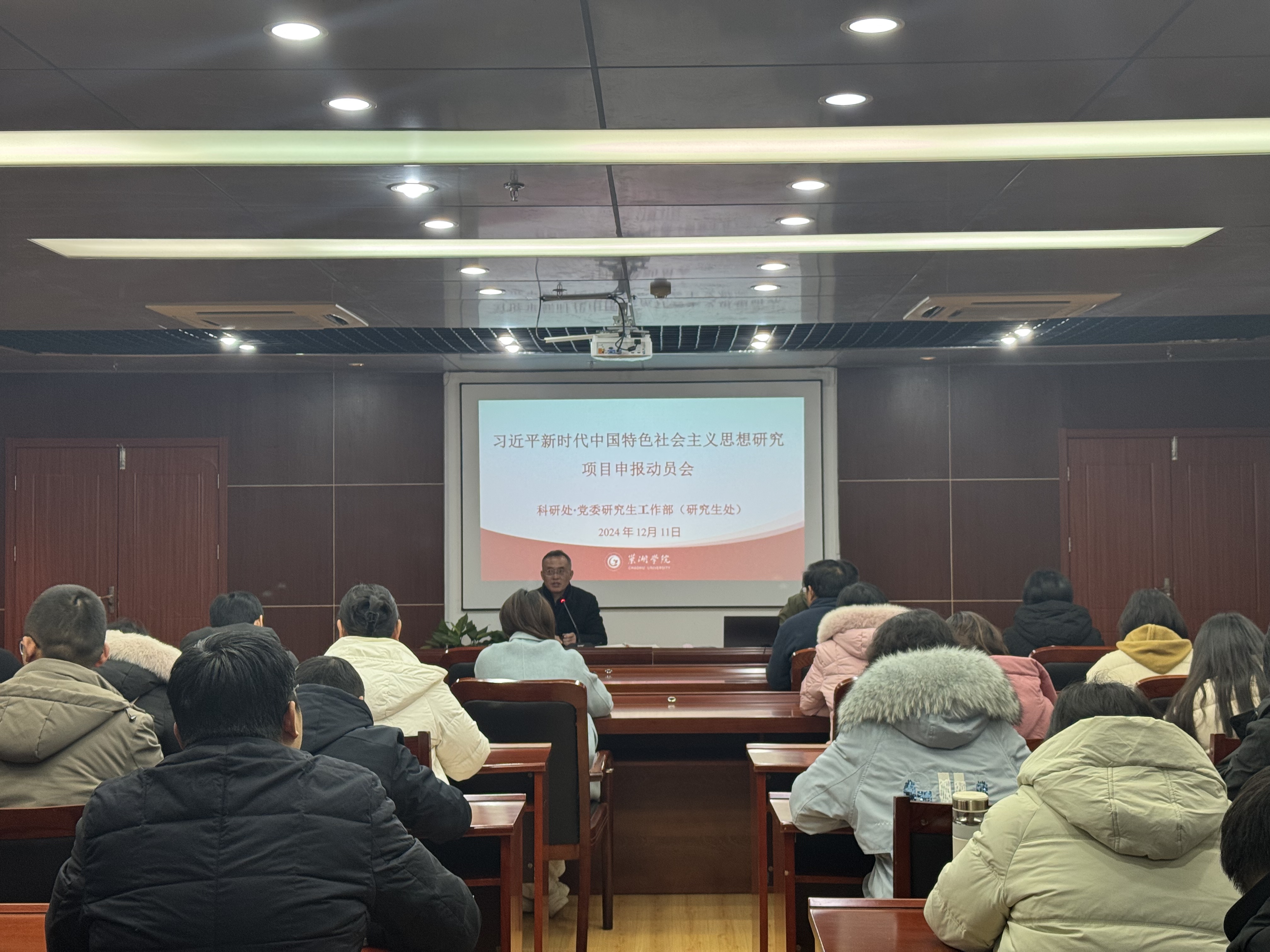 12月11日下午,科研处在图书馆10楼第二会议室召开了习近平新时代中国特色社会主义思想研究项目申报动员会。二级学院教学科研秘书和部分教师代表参加了会议,会议由科研处处长姚磊主持。