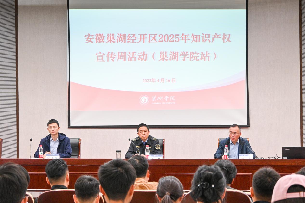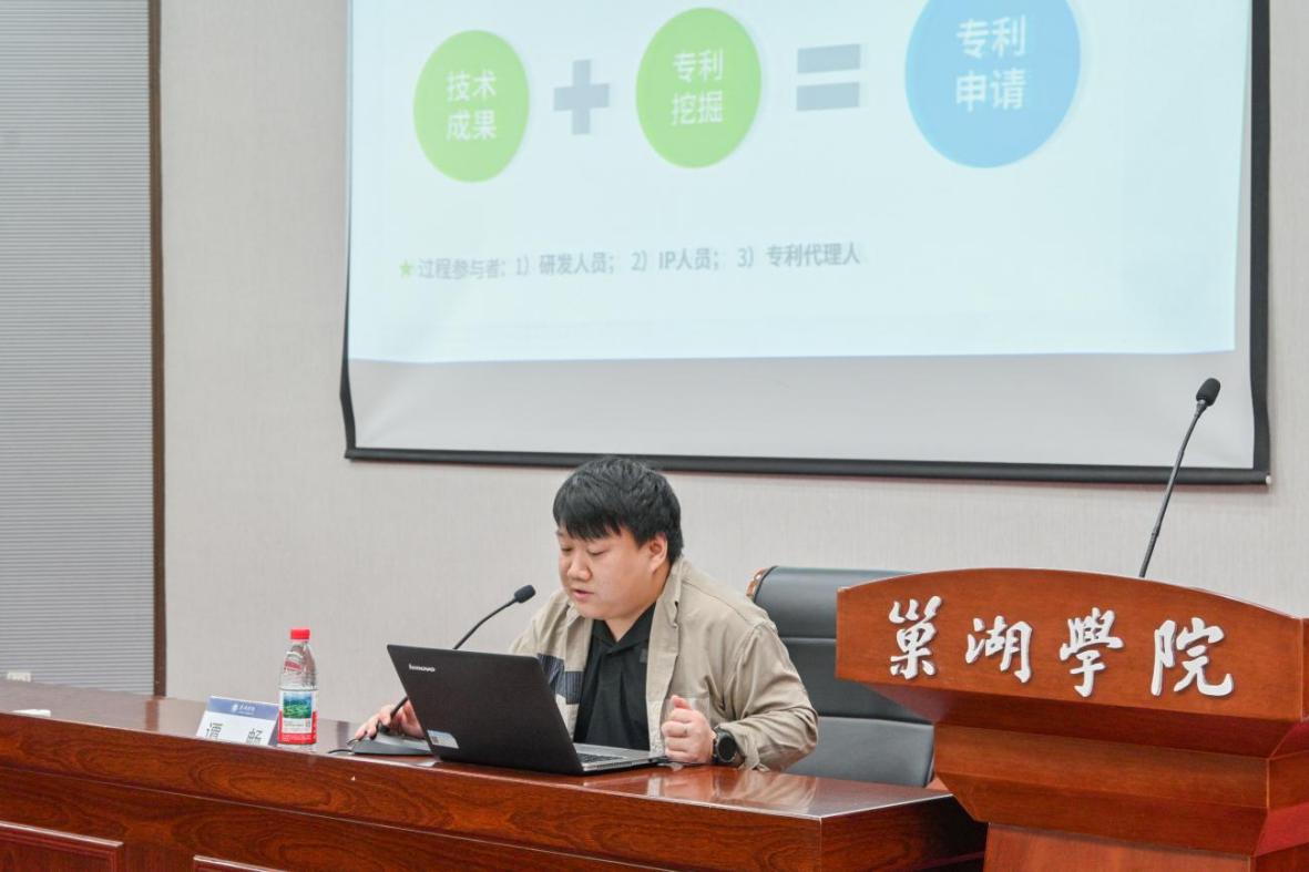 为提高师生专利技术交底书撰写能力,促进专利高质量发展,4月16日,Beat365唯一官方网站与安徽巢湖经开区在致知楼报告厅联合举办2025年知识产权宣传周专题交流会(Beat365唯一官方网站站)。邀请中部知光技术转移有限公司专利工程师谭畅作专题宣讲。安徽巢湖经开区市场监管局副局长王兵、四级主任科员施松涛、一级科员王睿以及学校从事创新创业活动的教职工与学生参会。会议由科研处处长姚磊主持。