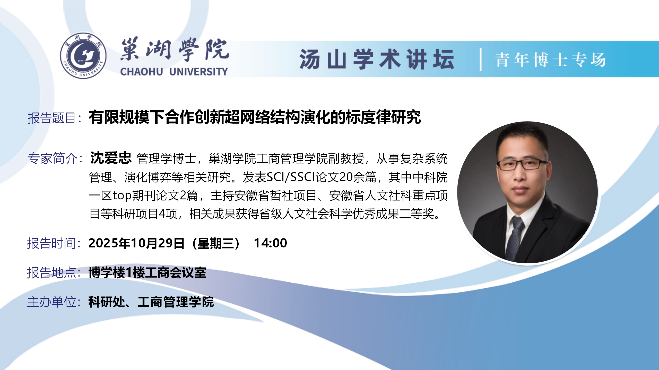 汤山学术讲坛青年博士专场第25讲:(10月29日:工商管理学院沈爱忠博士讲座)