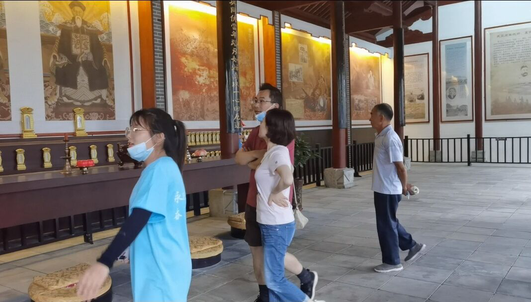 上午,团队抵达昭忠祠时,来昭忠祠的游客并不多,渐渐地,各地慕名而来的游客,越来越多,为的是感受一下这座保存完好的淮军宝贵遗产。团队成员主动为游客讲解观览。在介绍昭忠祠的建造历史背景过程中,游客对昭忠祠中清末重臣李鸿章为纪念淮军将士而奏请清廷敕建的情怀感动。在昭忠祠门厅、正殿和两厢房介绍时,队员引导游客来到西厢房,为其介绍了淮军十三营的初创历史。