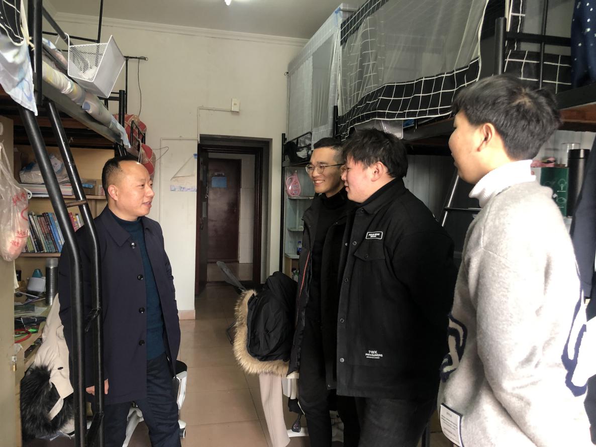 走访过程中,夏桂林与毕业生交流实习体会,询问论文准备情况和就业意向,了解毕业生在就业问题上的担忧与困惑,帮助毕业生解决实际困难。对于还未落实工作单位的学生,夏桂林表示,学院一直密切关注学生就业情况,积极做好就业信息发布到工作岗位的推荐,希望同学们鼓足信心,先就业再择业,多积累经验,厚积而薄发,同时加强与老师之间的沟通和联系,多参加专场招聘会及大型招聘会,以良好的心态顺利就业。夏桂林还仔细查看了毕业生的寝室生活情况,同时督促同学们注意用电安全,认真做好宿舍卫生工作。