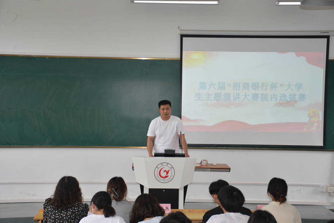 5月18日下午旅游管理学院在明德楼西二阶梯教室举办第六届“招商银行杯”安徽省大学生主题演讲比赛院内选拔赛。本次比赛邀请到旅游管理学院团总支负责人孙圆圆、辅导员黄维兵老师和院团学组织负责人担任评委。