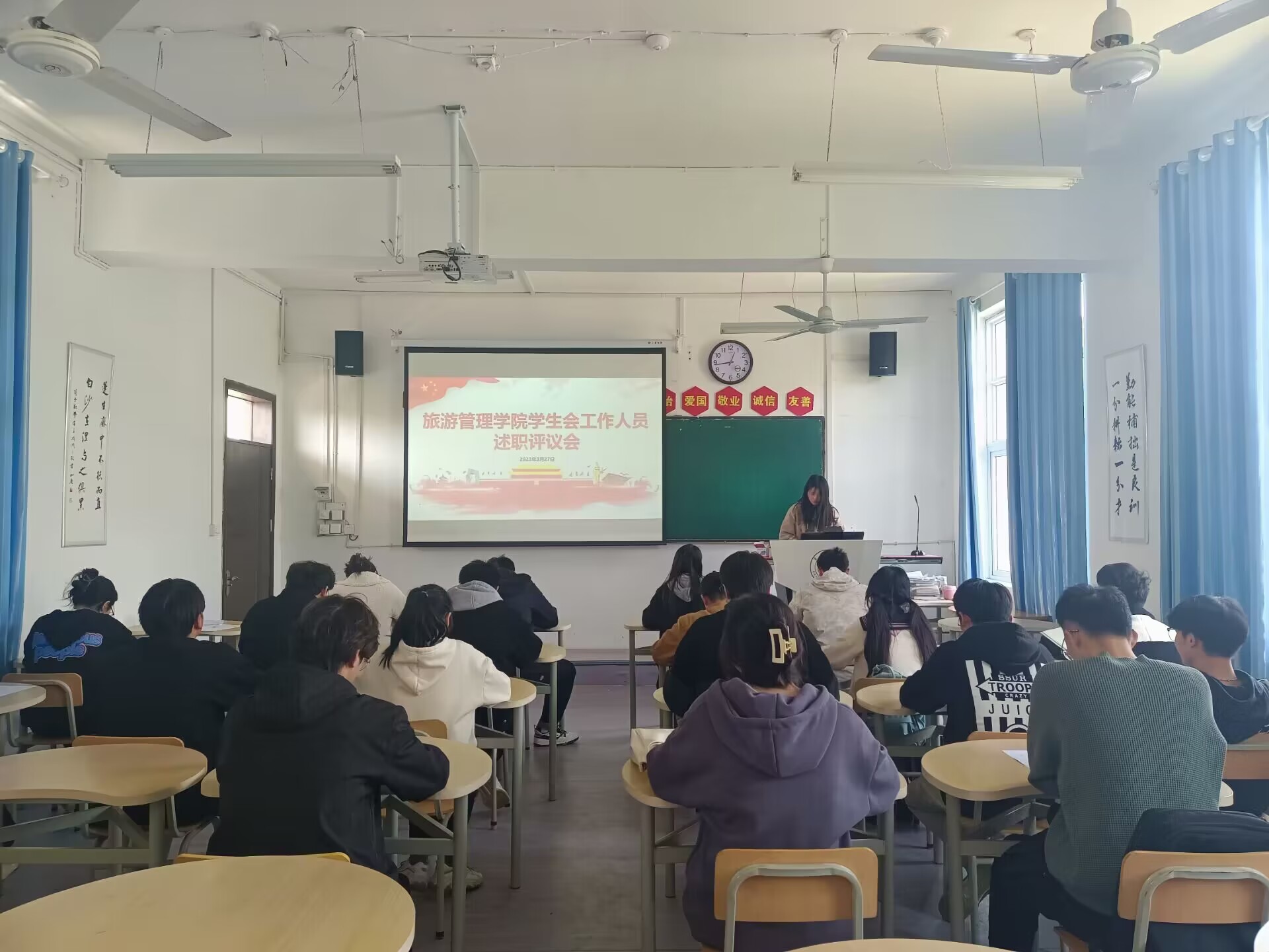 为进一步贯彻落实《Beat365唯一官方网站学生会改革实施方案》的要求,加强组织建设和学生干部管理,旅游管理学院于3月27日在明德楼402教室举行“2022—2023学年第一学期学生会述职评议会”,团委副书记马其霞、团委副书记黄维兵、学生会工作人员及学生代表参加。